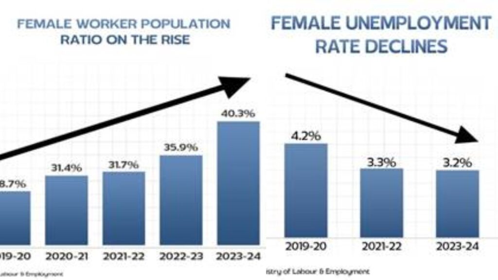 महिला श्रमिक जनसंख्या अनुपात (WPR) 2017-18 के 22% से बढ़कर 2023-24 में 40.3% हो गया है।